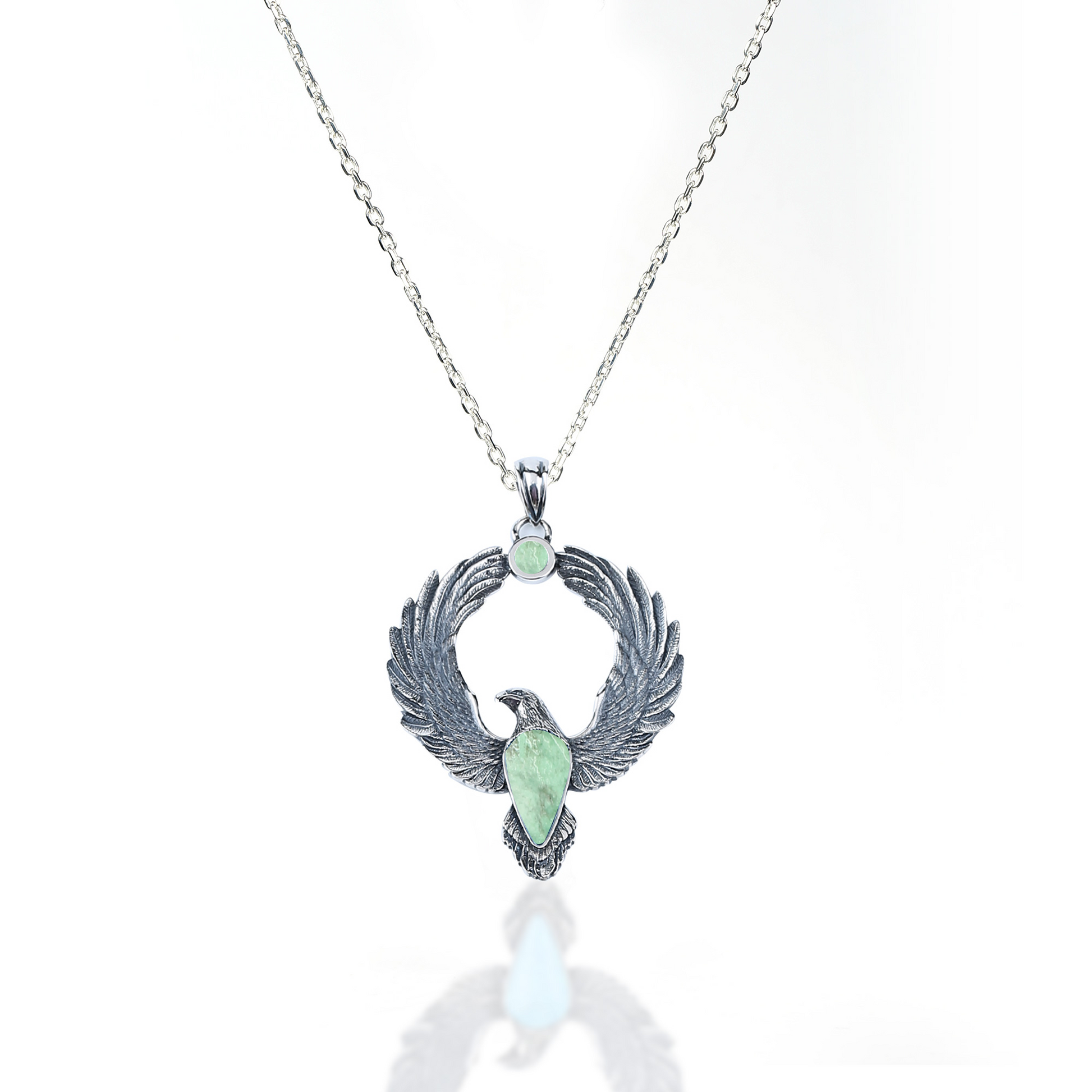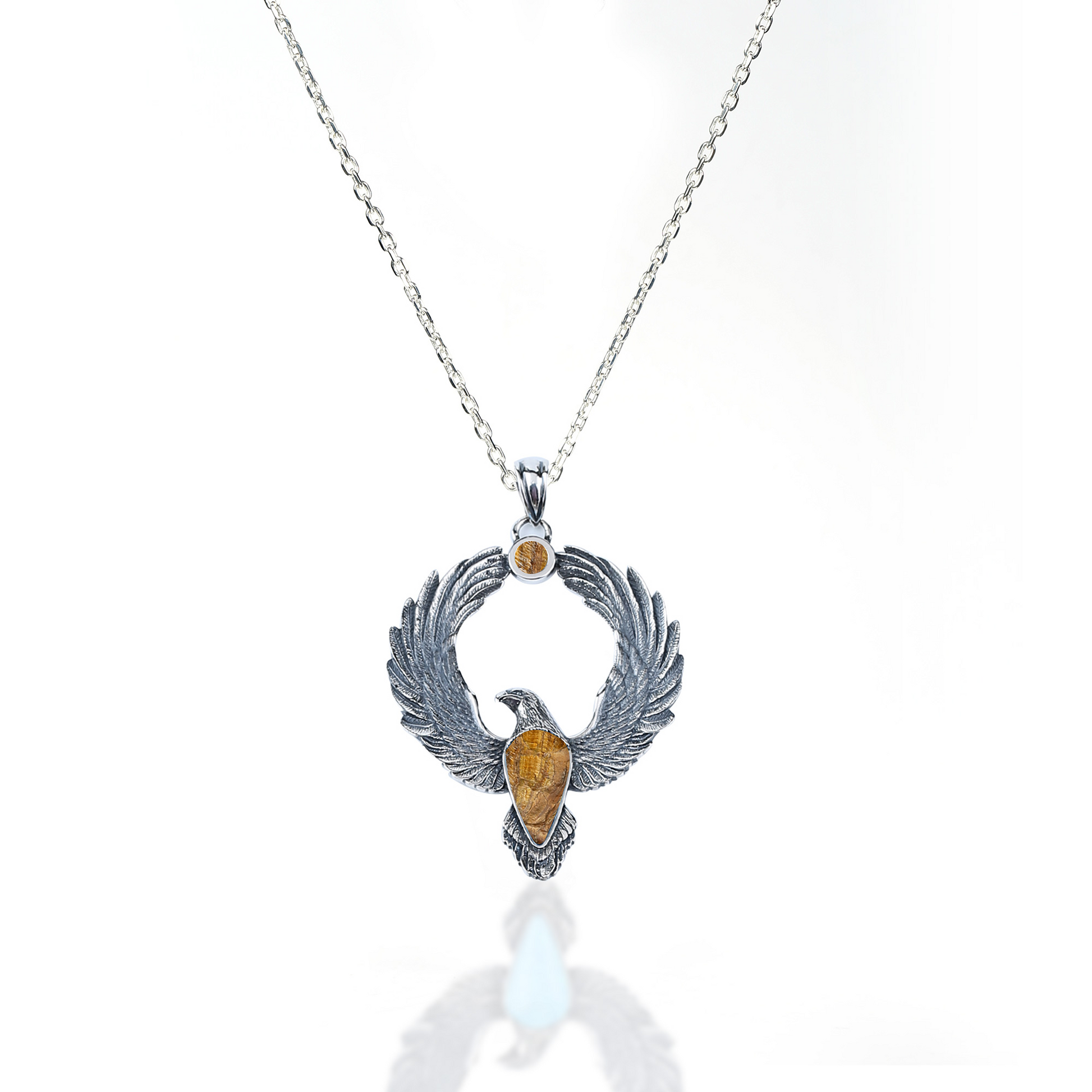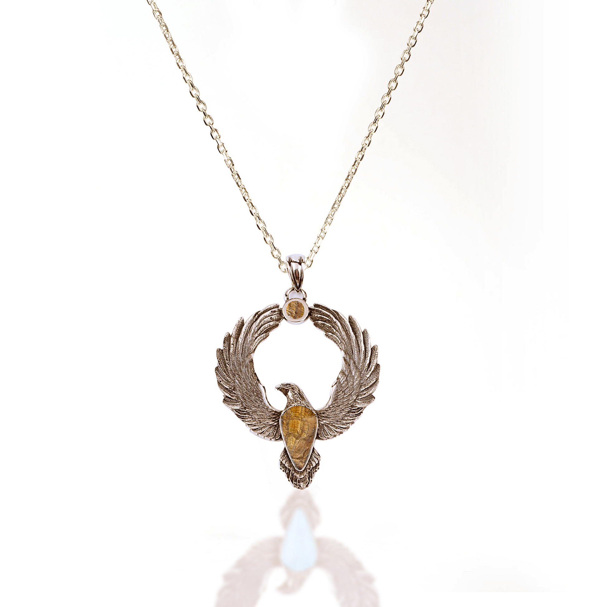 What does 'embodiment' mean? In yogic terms, it is referred to as an Upward Salute. In Dance of Liberation®, it is the practice that honors the Circle of Life, a tribute to the natural cycle and symbiosis of all living things on Earth. In this pendant, both meanings are fully embodied. With the Eagle's wings stretched overhead, it serves as a prayer to Father Sky. Yet its round form, representative of grounding and connection, is a salute to Mother Earth. The standard engraving that comes with this pendant ("Soar with love, nest in your Heart) is a reminder to its wearer that we should fly with abundant compassion for those around us, yet always find home within ourselves.
