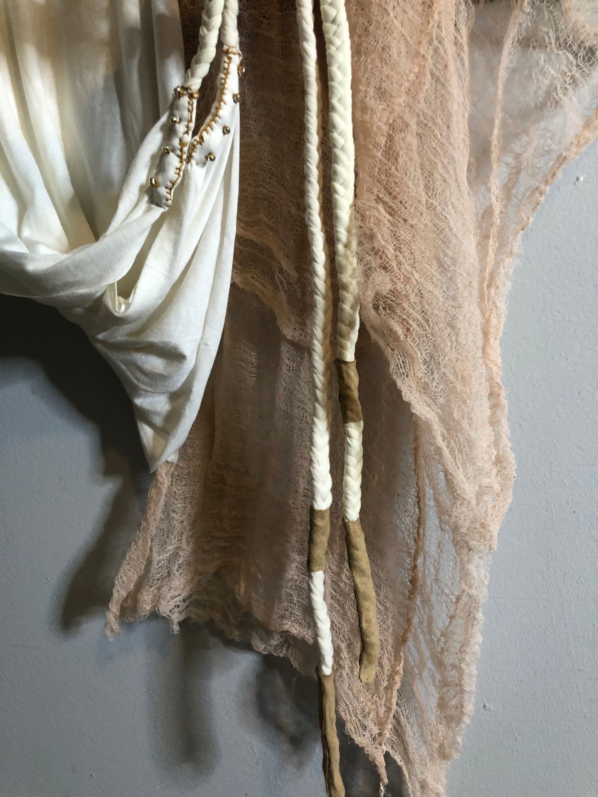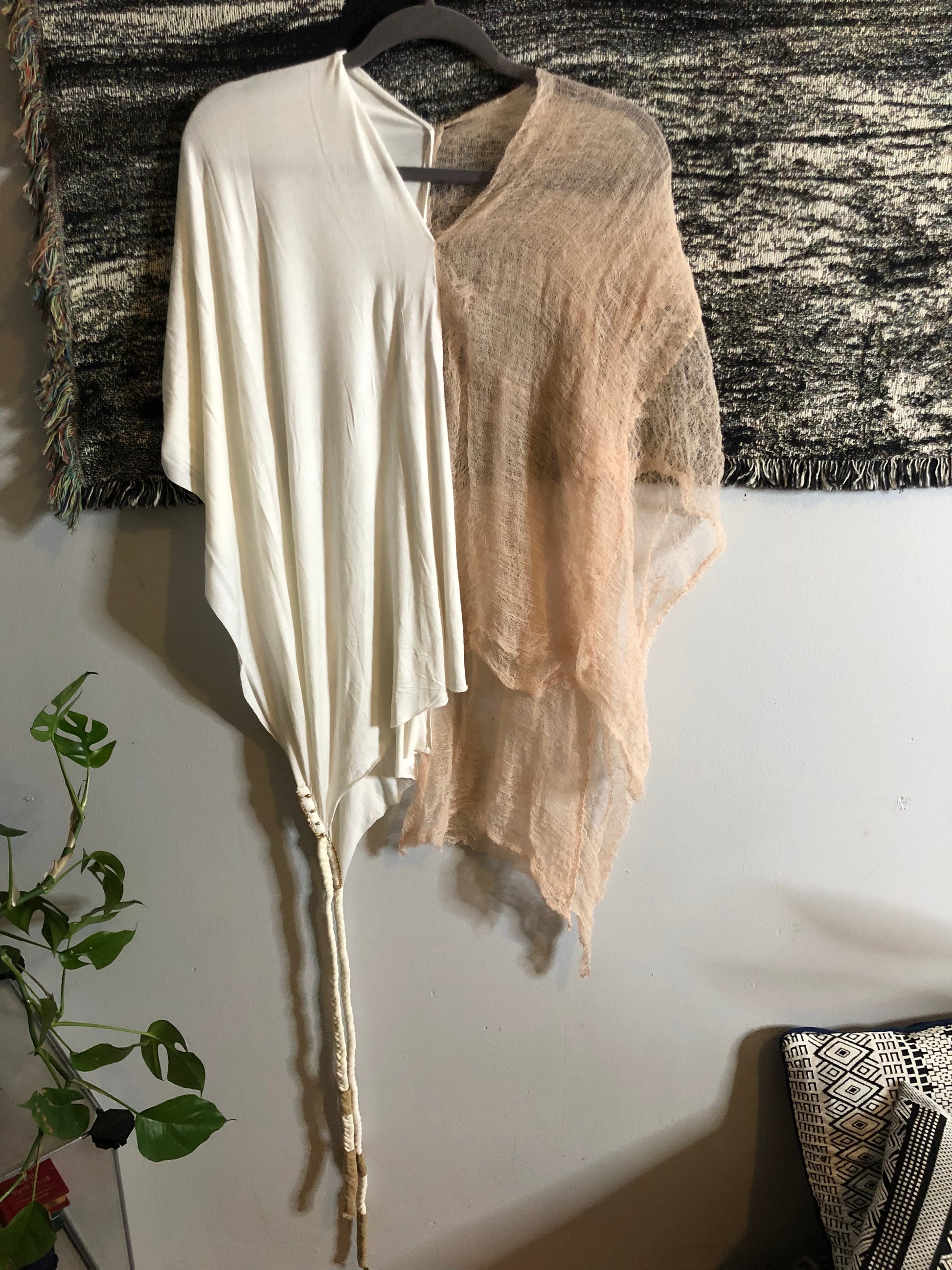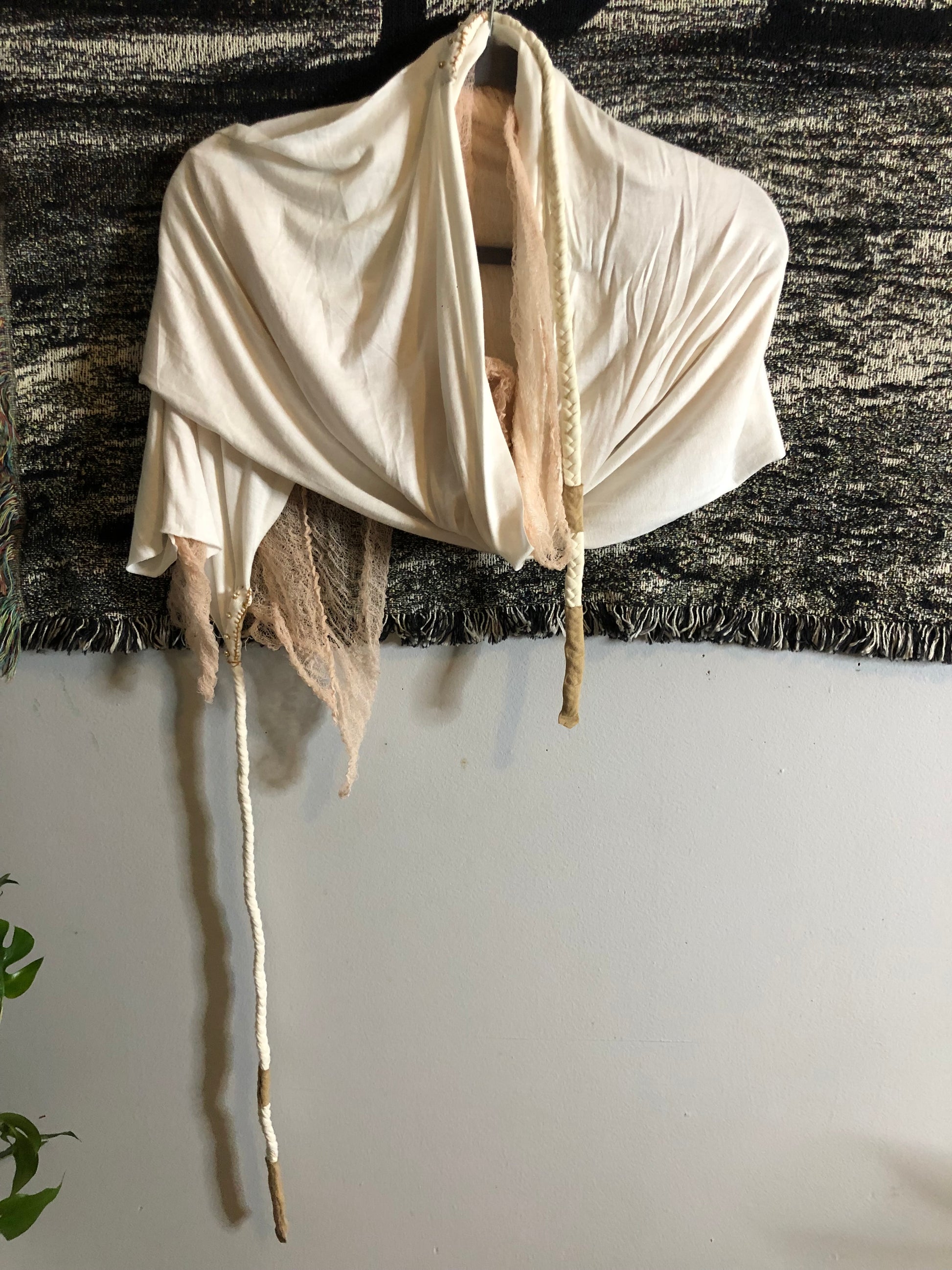 This beautiful desert shawl is a one of the kind creation. It can be worn as a headpiece, a belt, a scarf or a wrap.