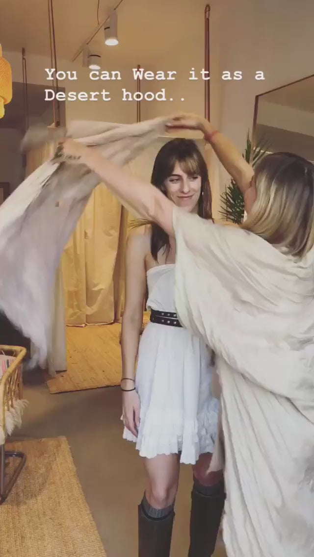 This gorgeous beduin style desert scarf is lovingly hand crafted by Lunara Love of Lunara Design for our collaborative collection "Nomad Life"