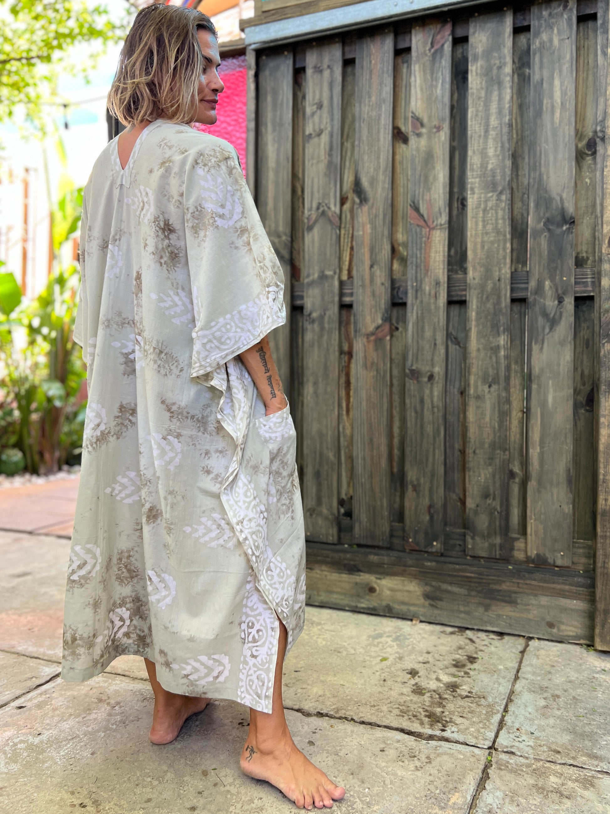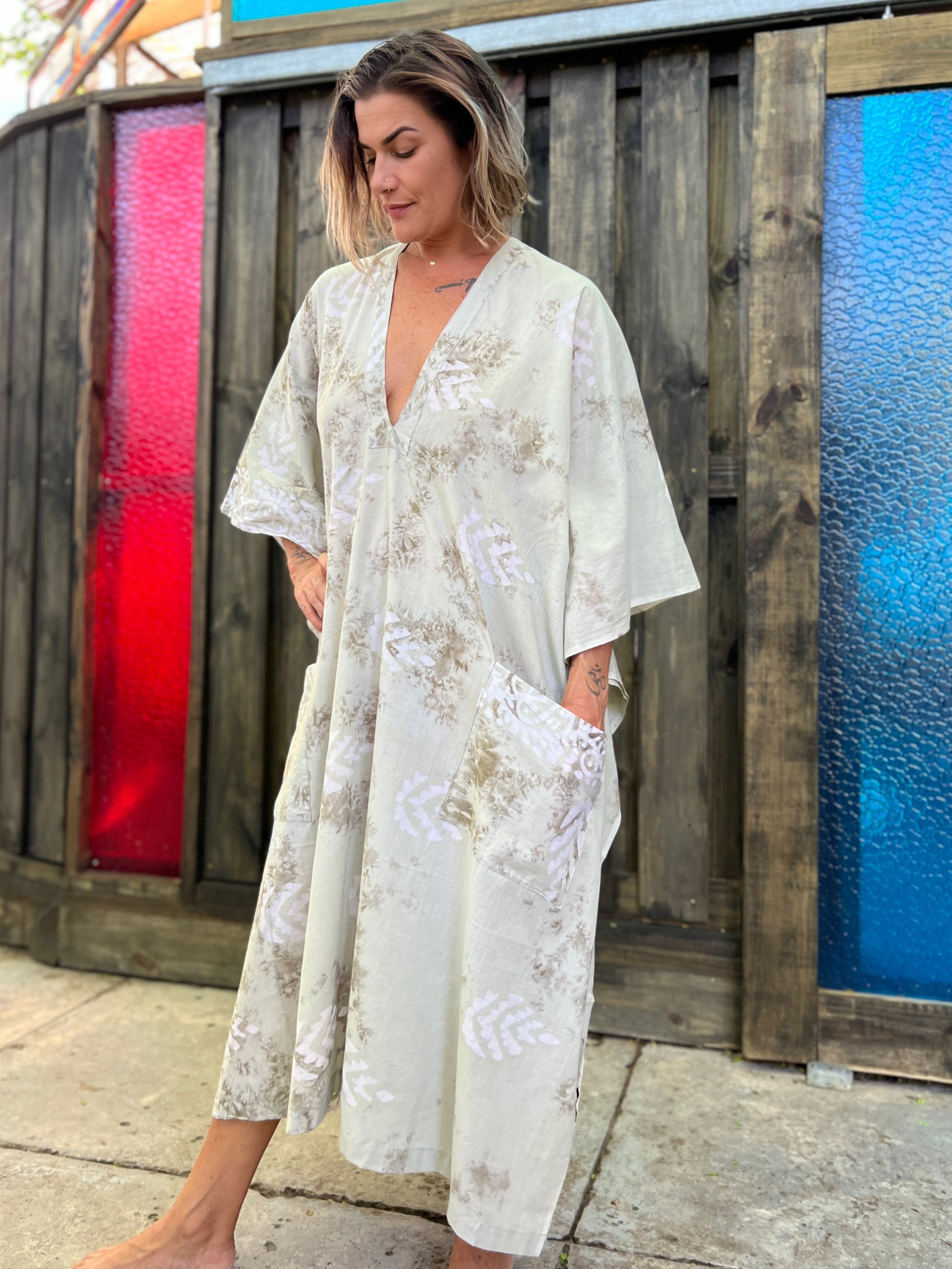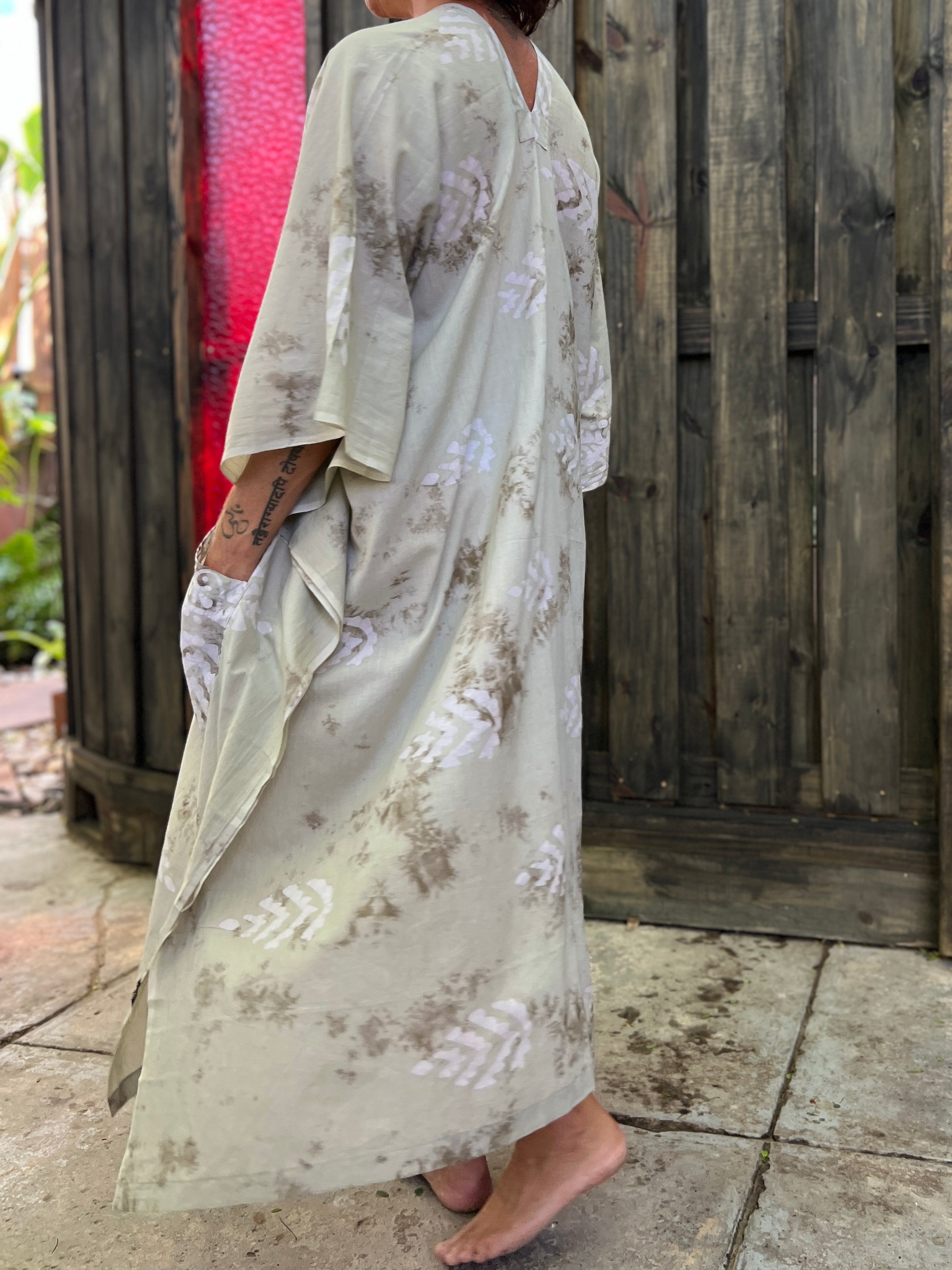 Cozy 100% Cotton Caftan Dress with a hand-block print.