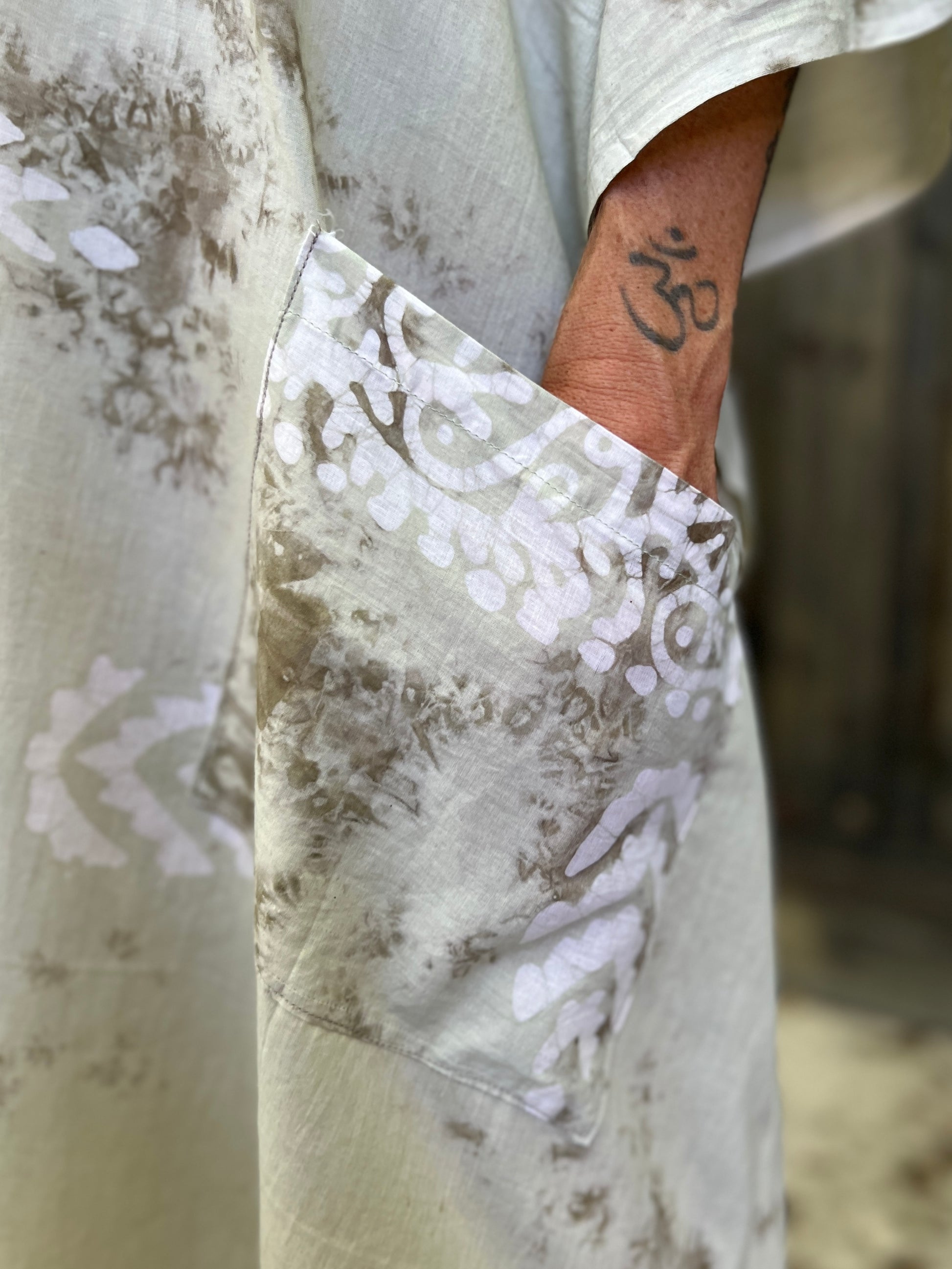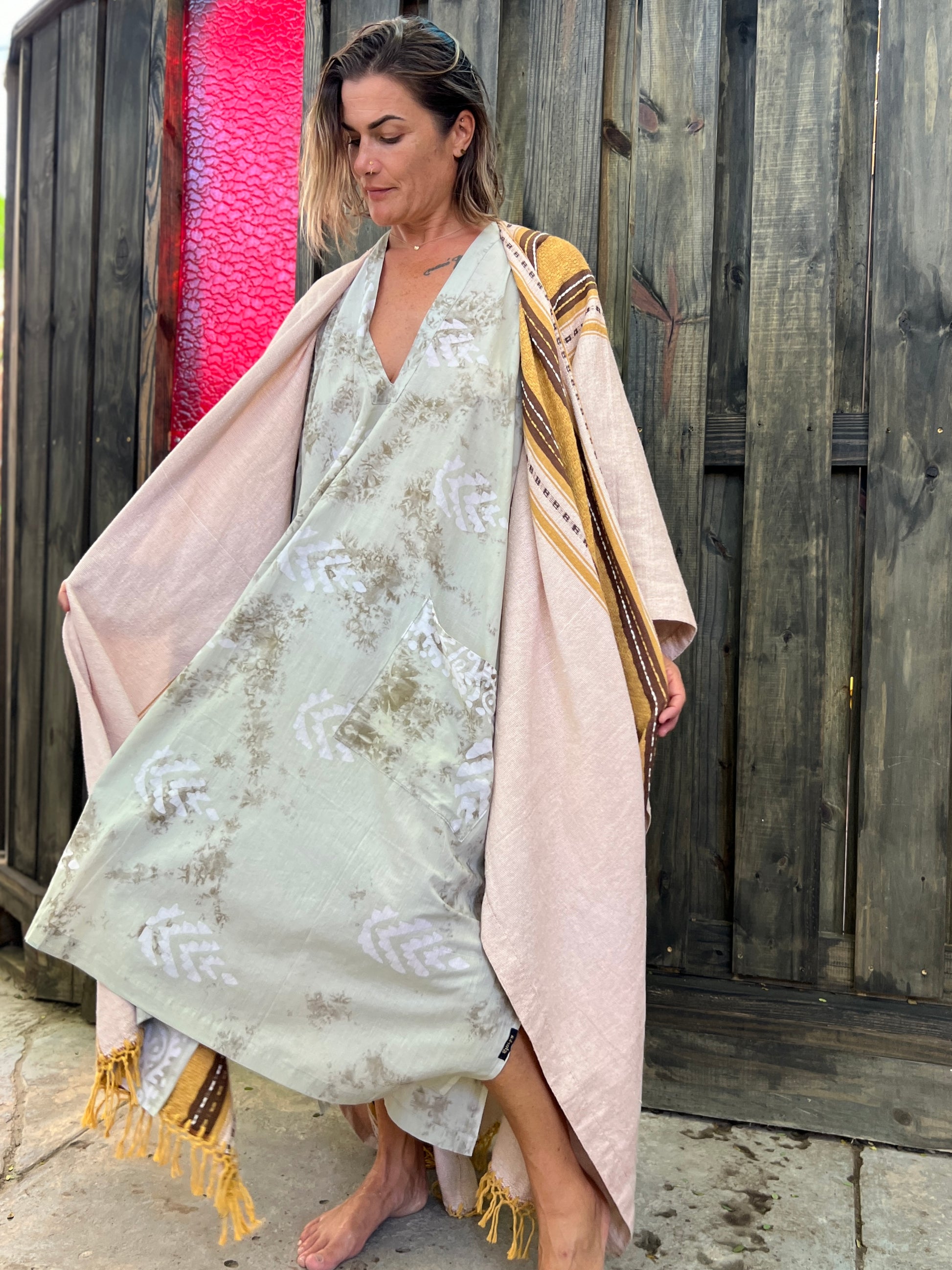 This dress with an incredible crisp print is an amazing addition to any bohemian wardrobe. It can be your perfect morning festival dress, a special ritual attire for an intentional gathering or a comfy dress foe lounging at home.