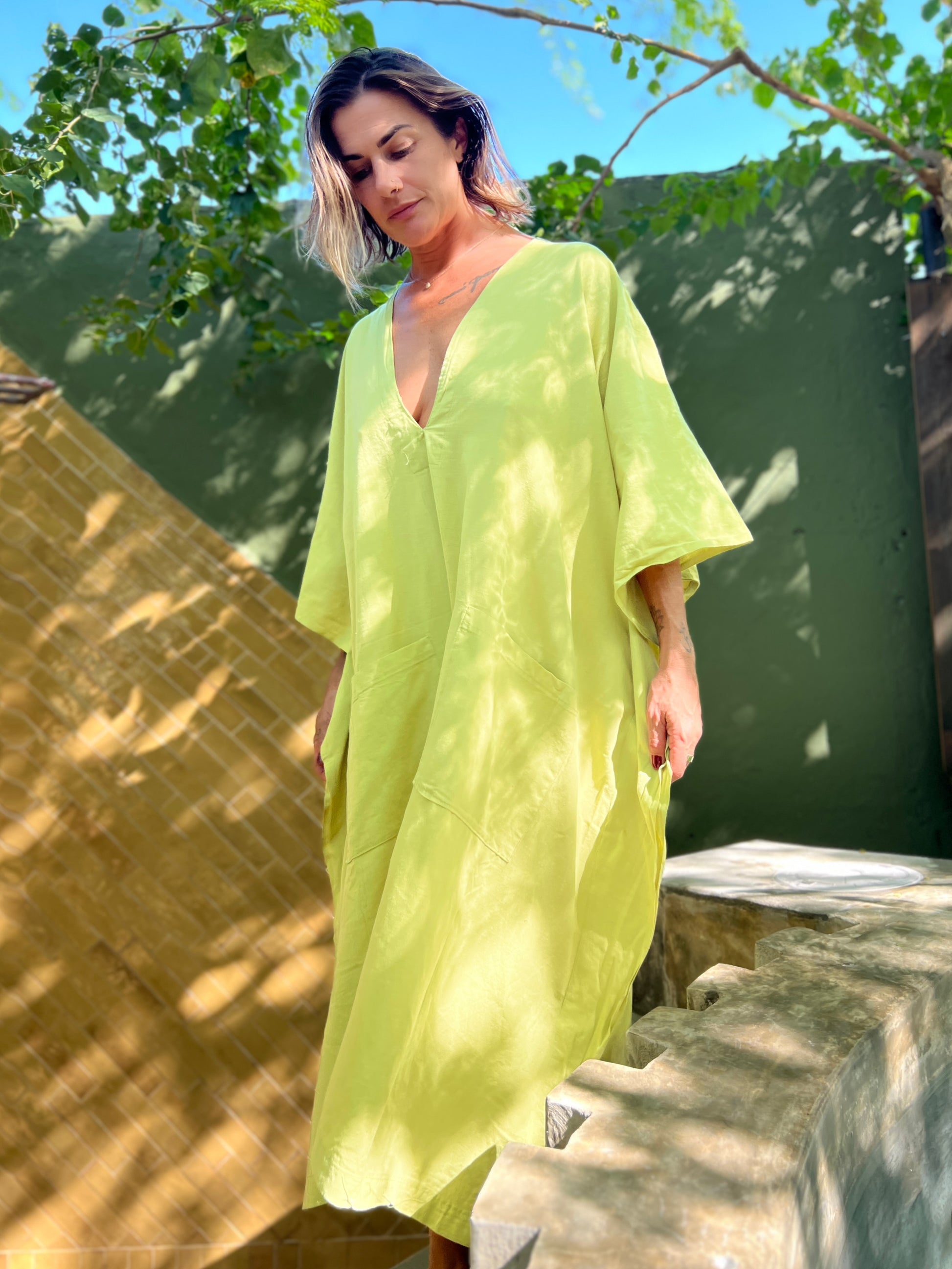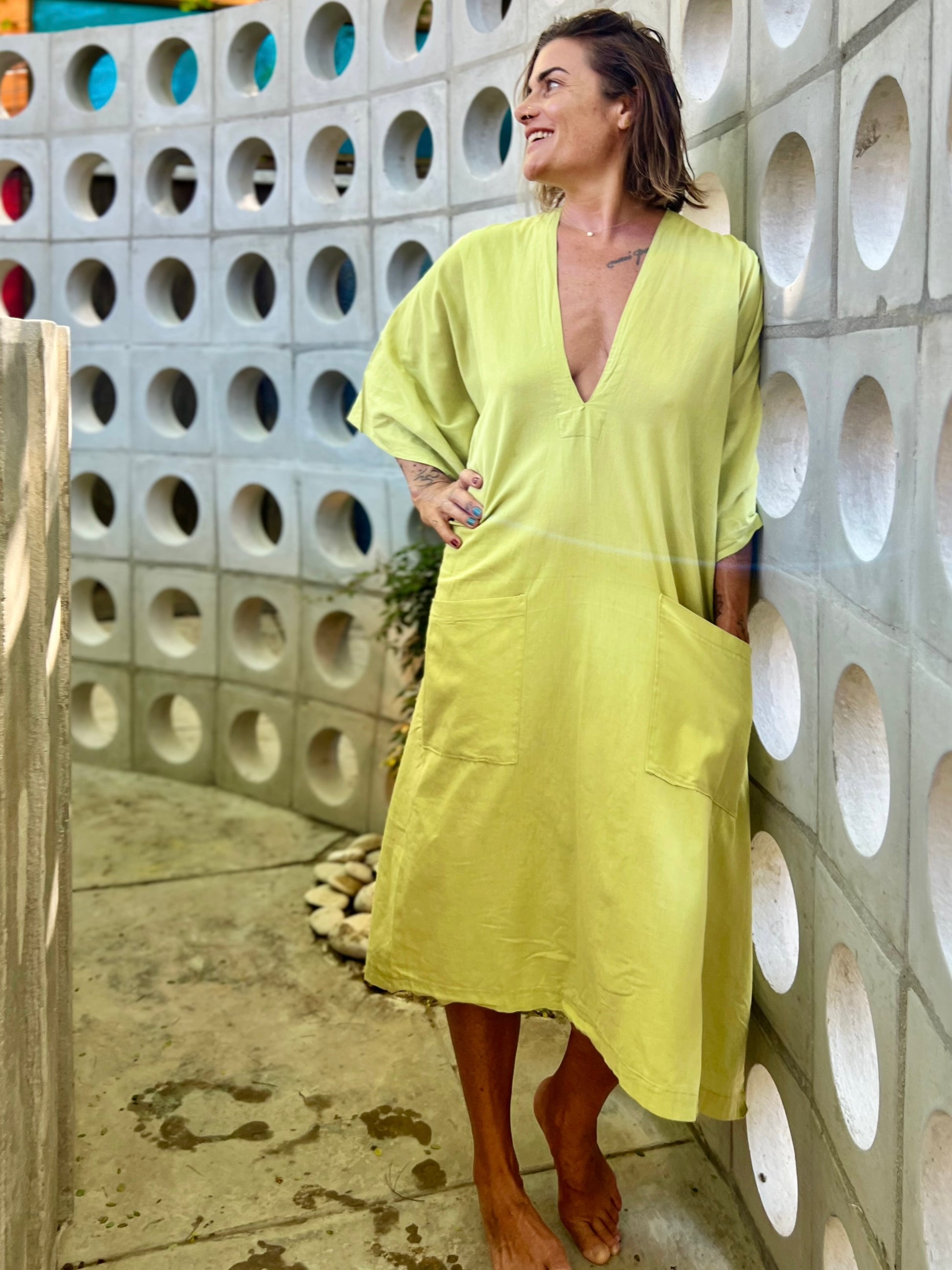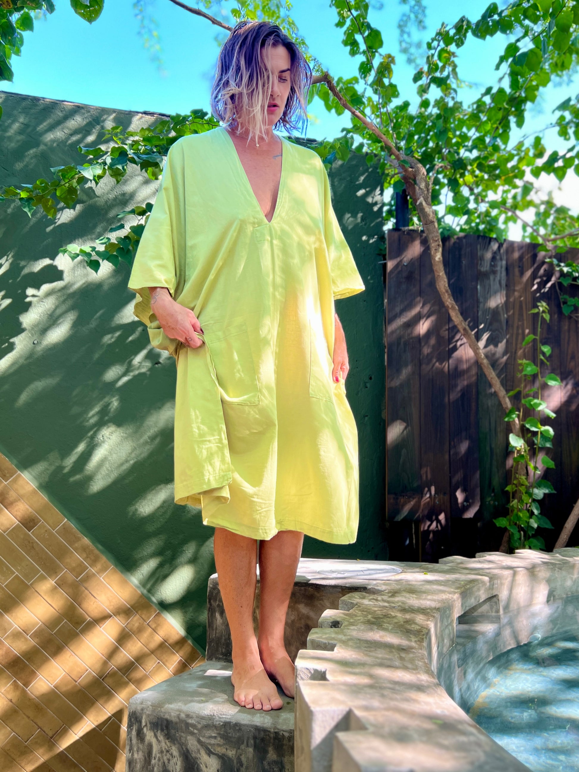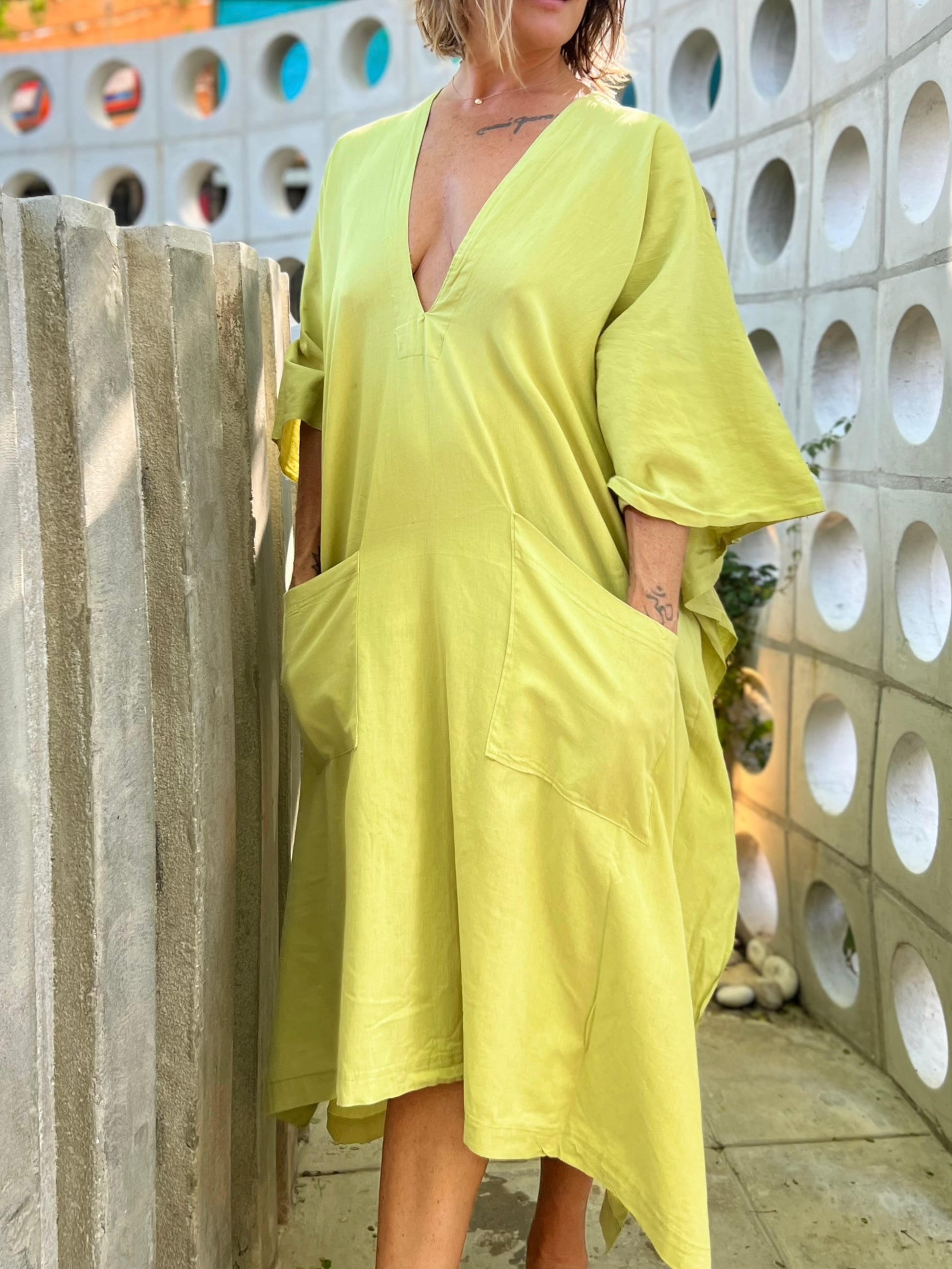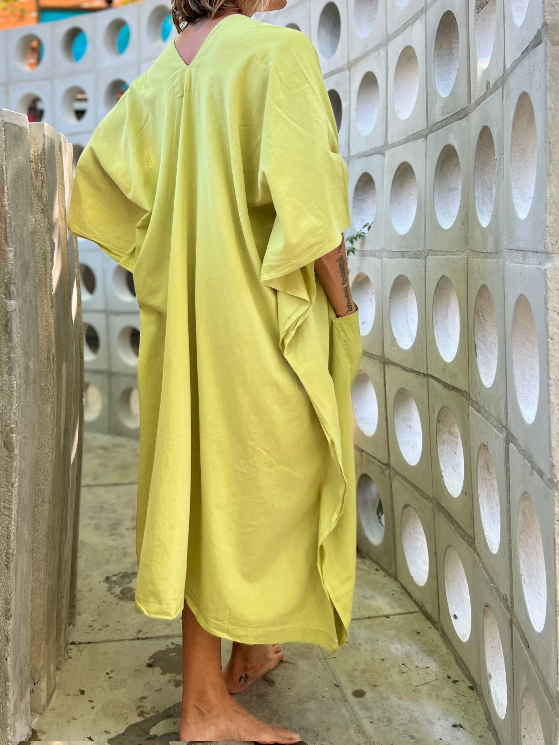 Cozy 100% Cotton Caftan Dress in pistachio solid color.
