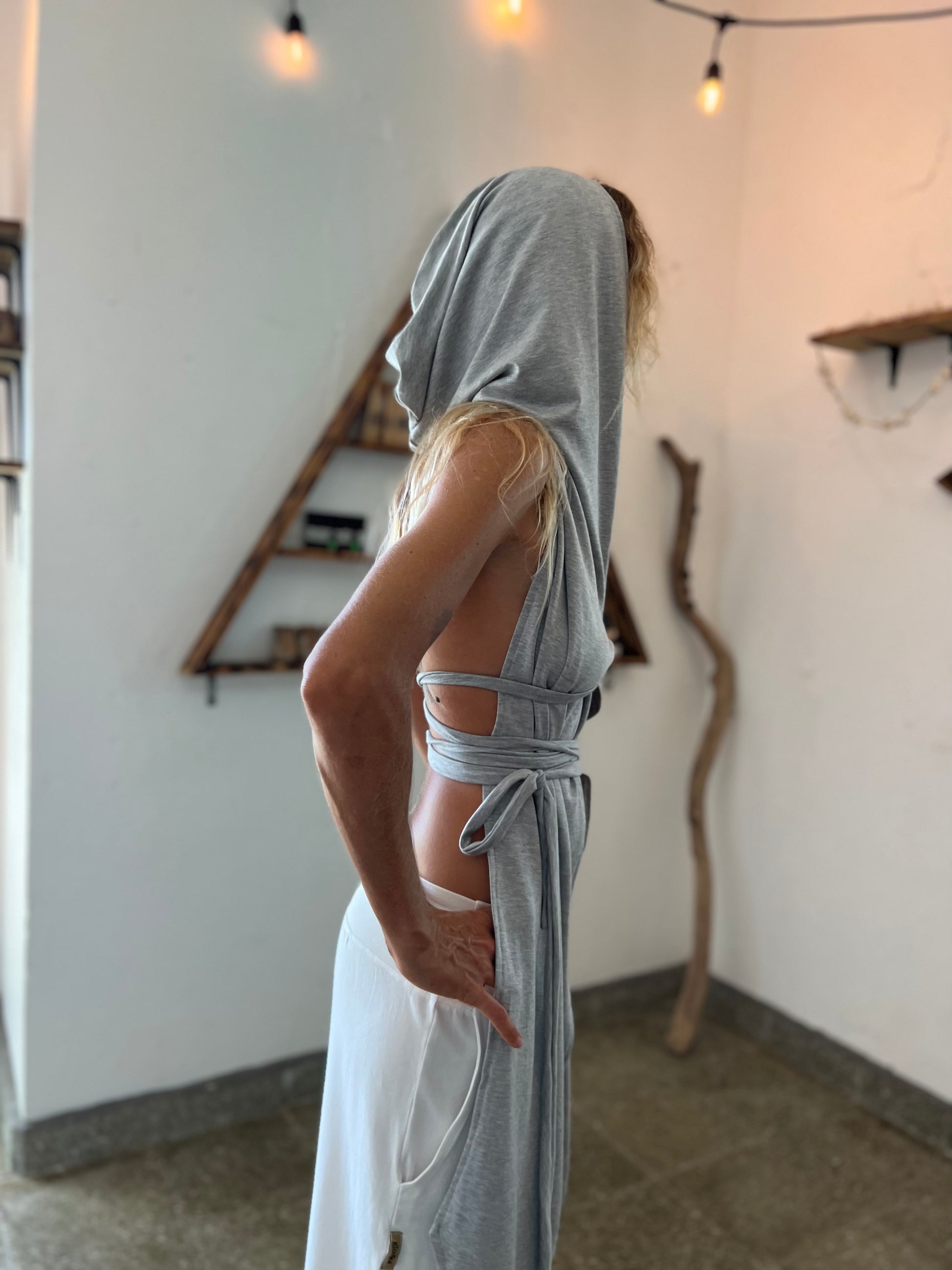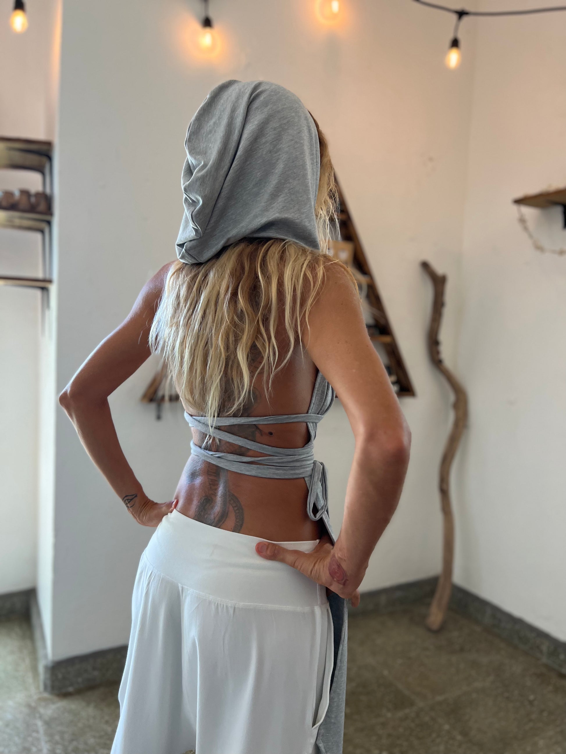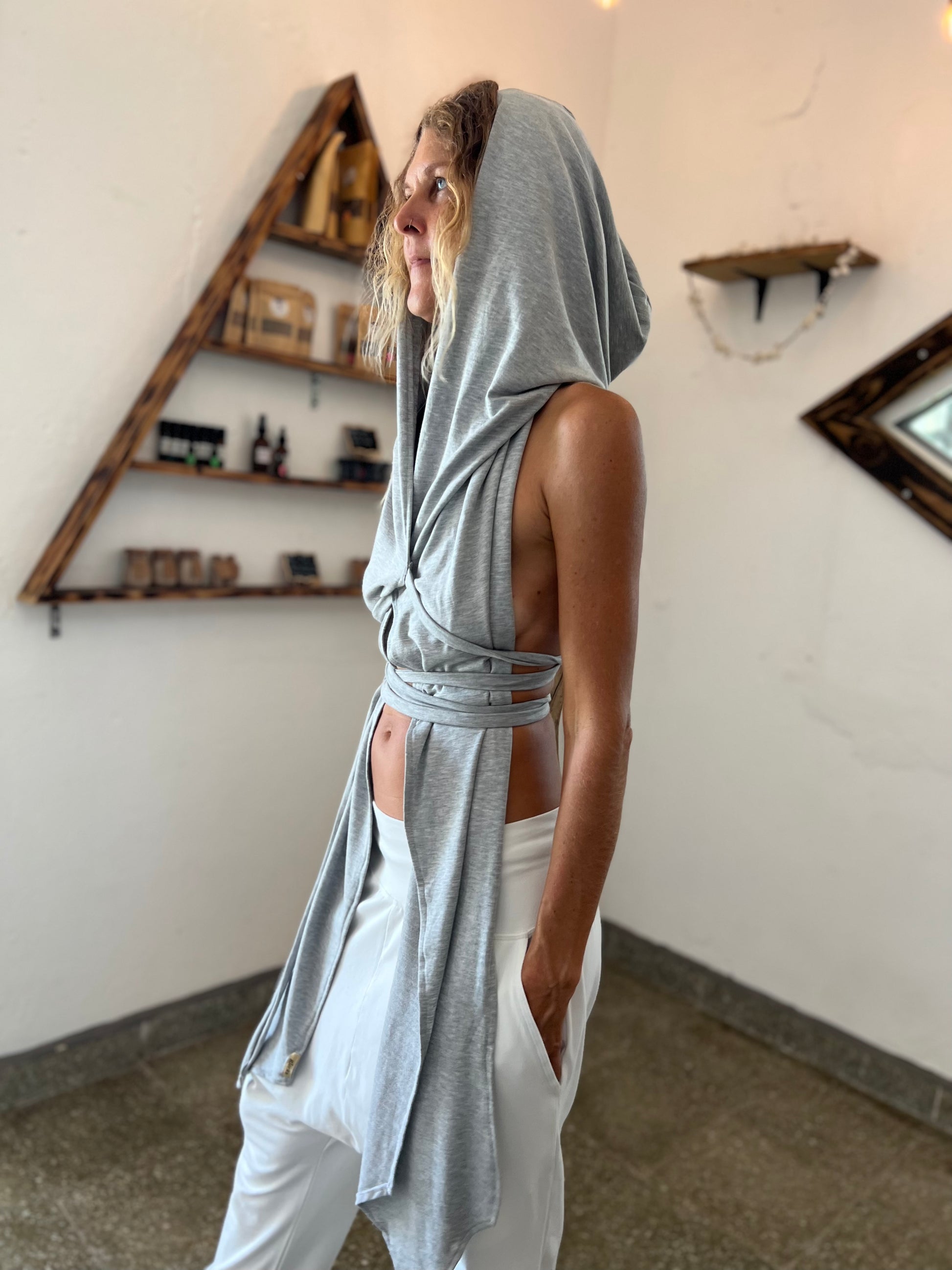 Loose cotton jersey top in grey , black or white with the large hood inspired by the Jedi, Nomad Lifestyle and a Festival Fashion.