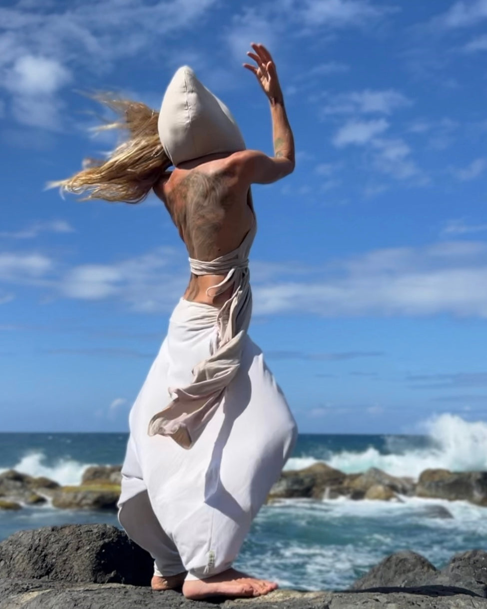 Soft, breathable and pleasant to skin, this outfit will be effortlessly moving with you—from a dance floor to your next Sacred Gathering and to the everyday celebrations of Life.