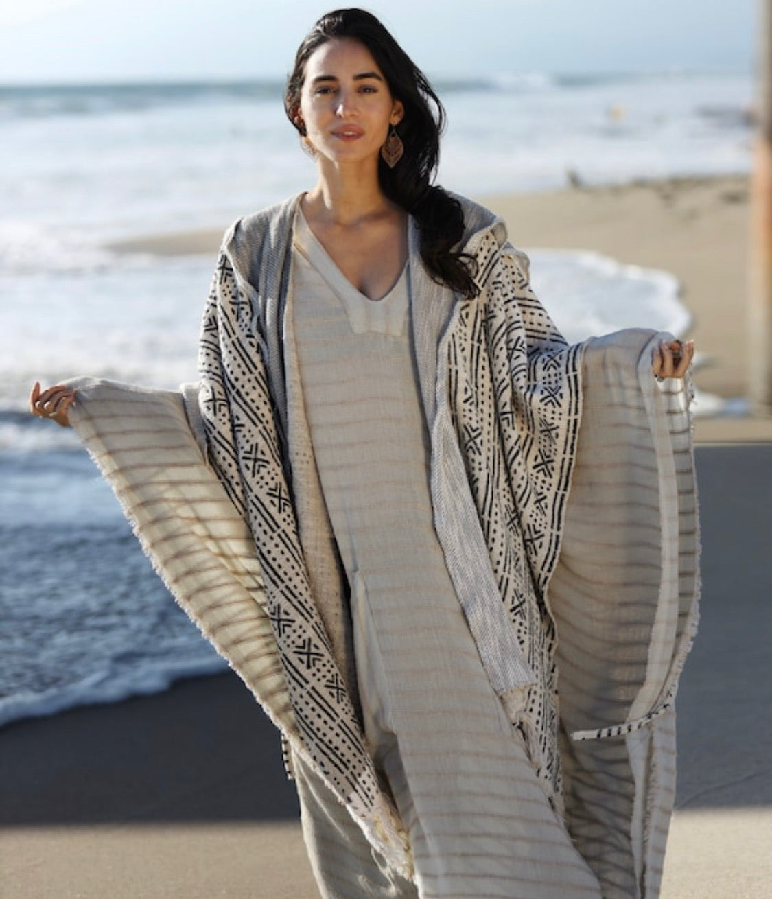 Beautiful 100% handwoven cotton poncho with the knitted hood.