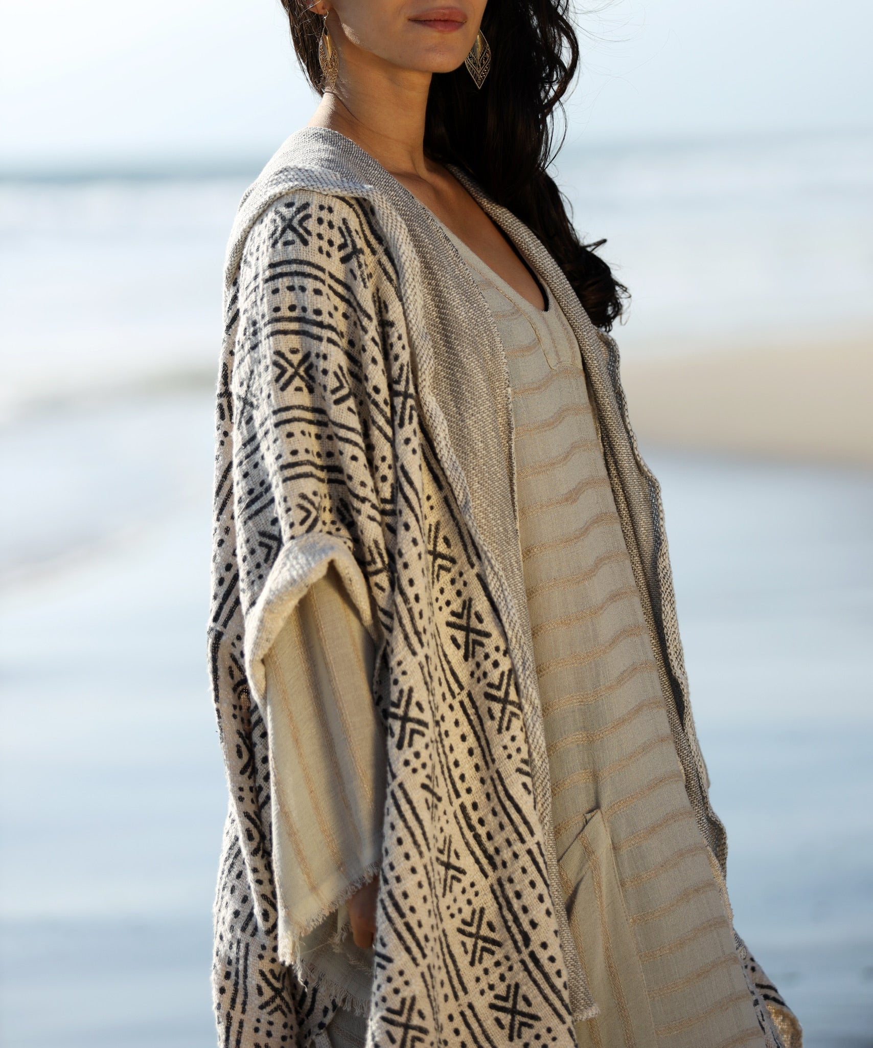 Material: 100% handwoven, handblock printed cotton, knits cotton jersey.