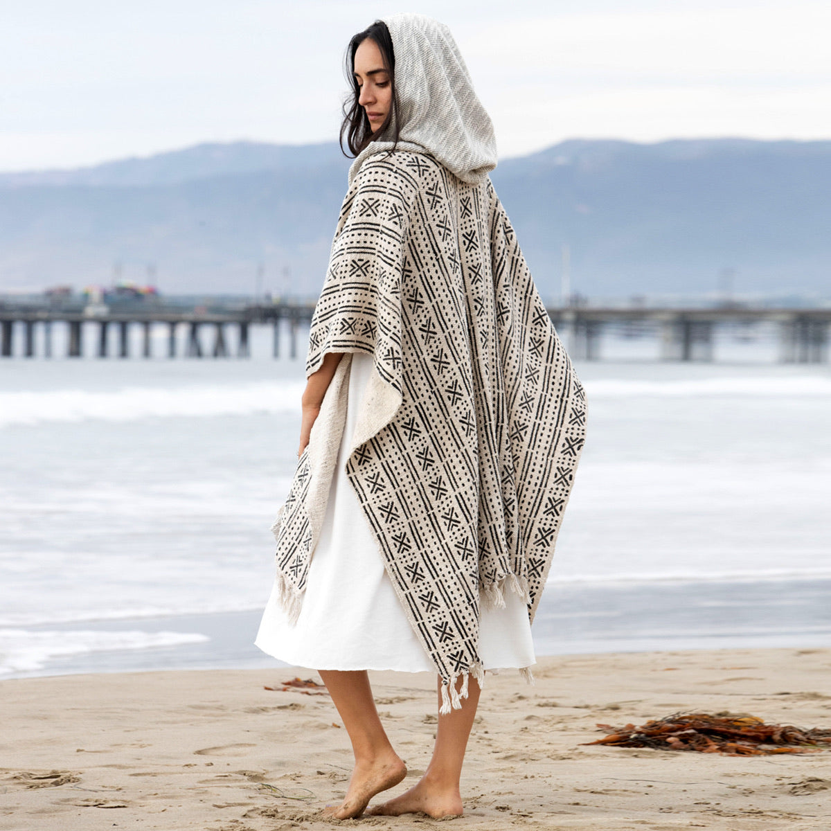 The poncho is great for the wanderers, nomads and free spirits. It works perfect as a cover up, a throw or a large scarf. It is warm and soft, and will be a great addition to any wardrobe!
