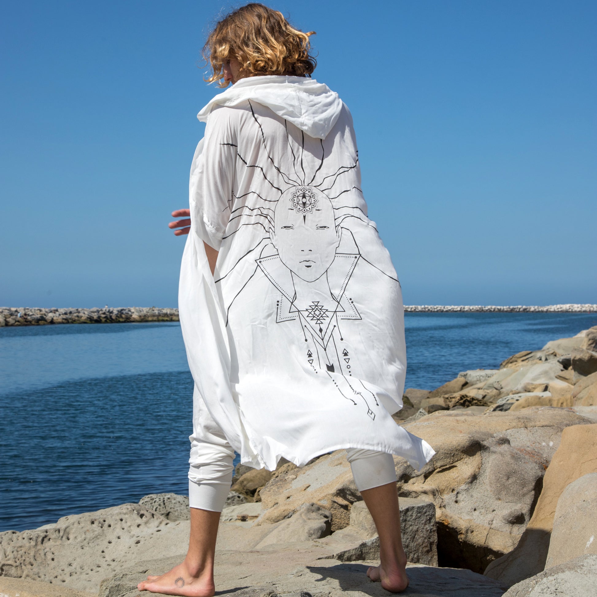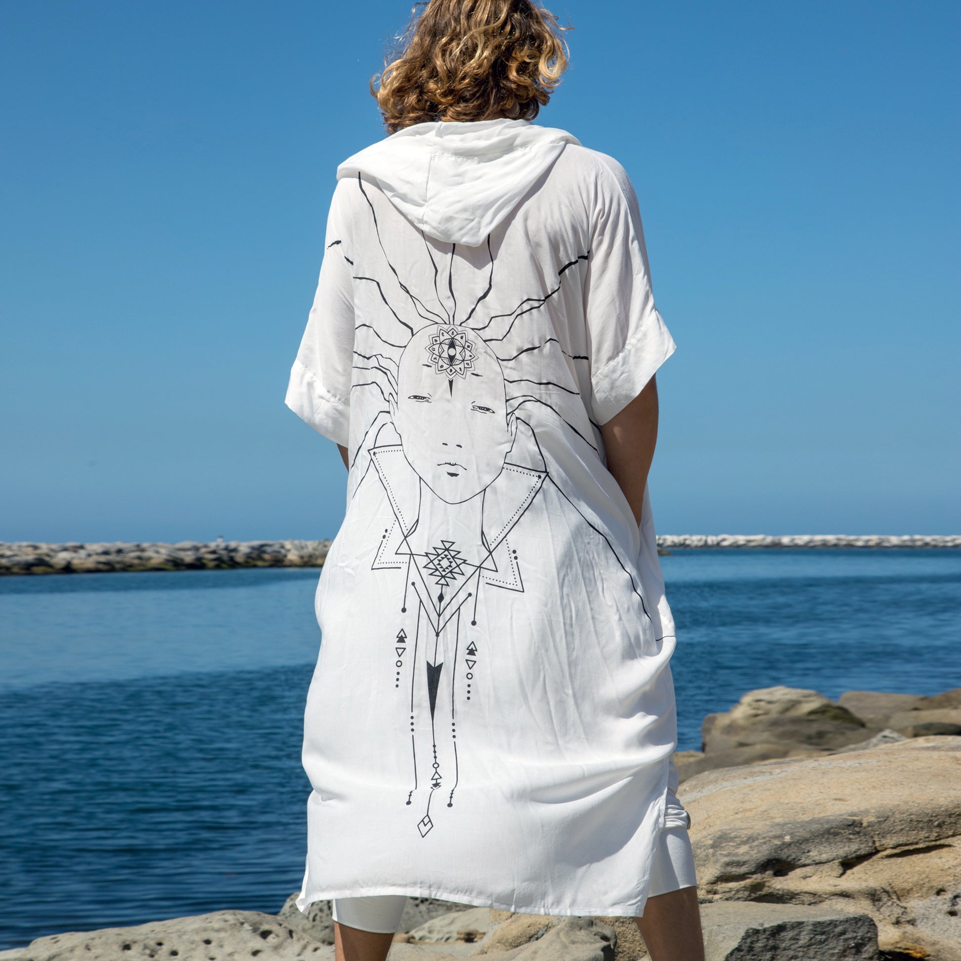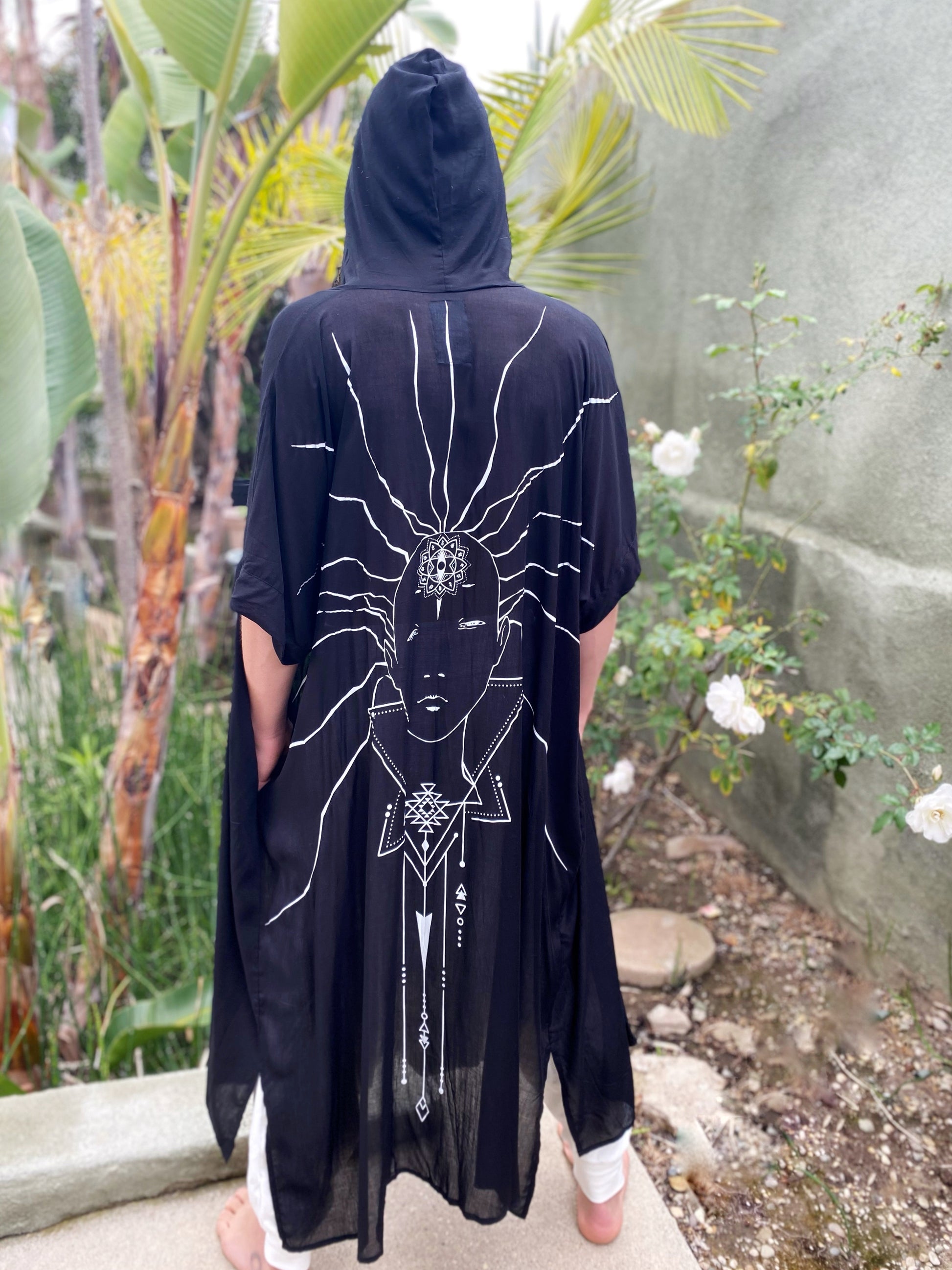 Connecting the magic of Bali and the beauty of California we have designed these beautiful hooded kimonos, transforming the gorgeous art sketch The Wandering Monk into a print and giving Him a new dharma and a new path to walk the Earth, staying true to our mission of making this world a better place. Together. 🙌✨