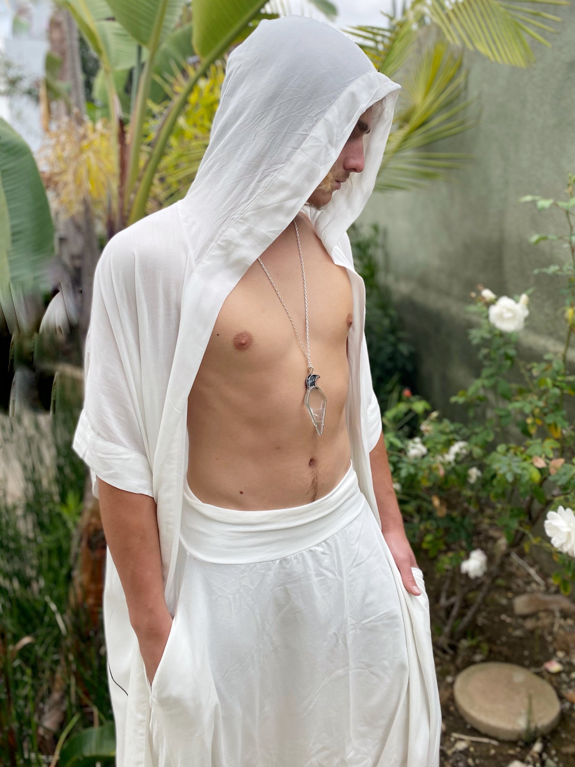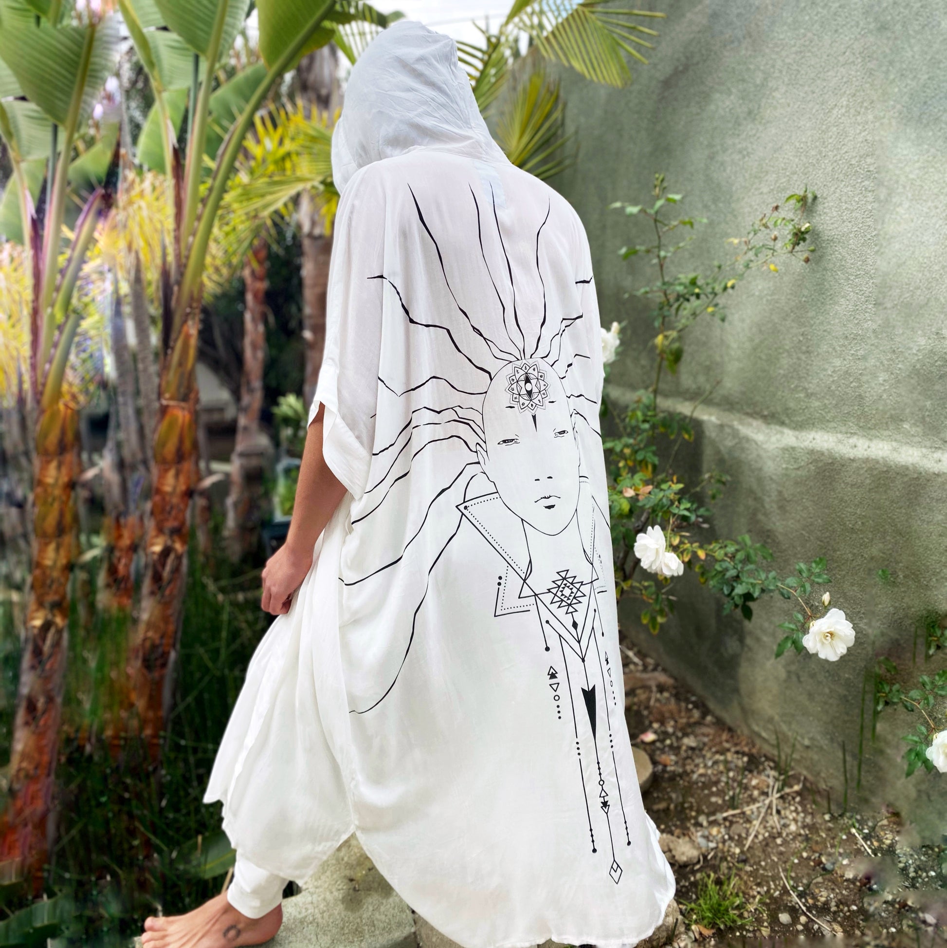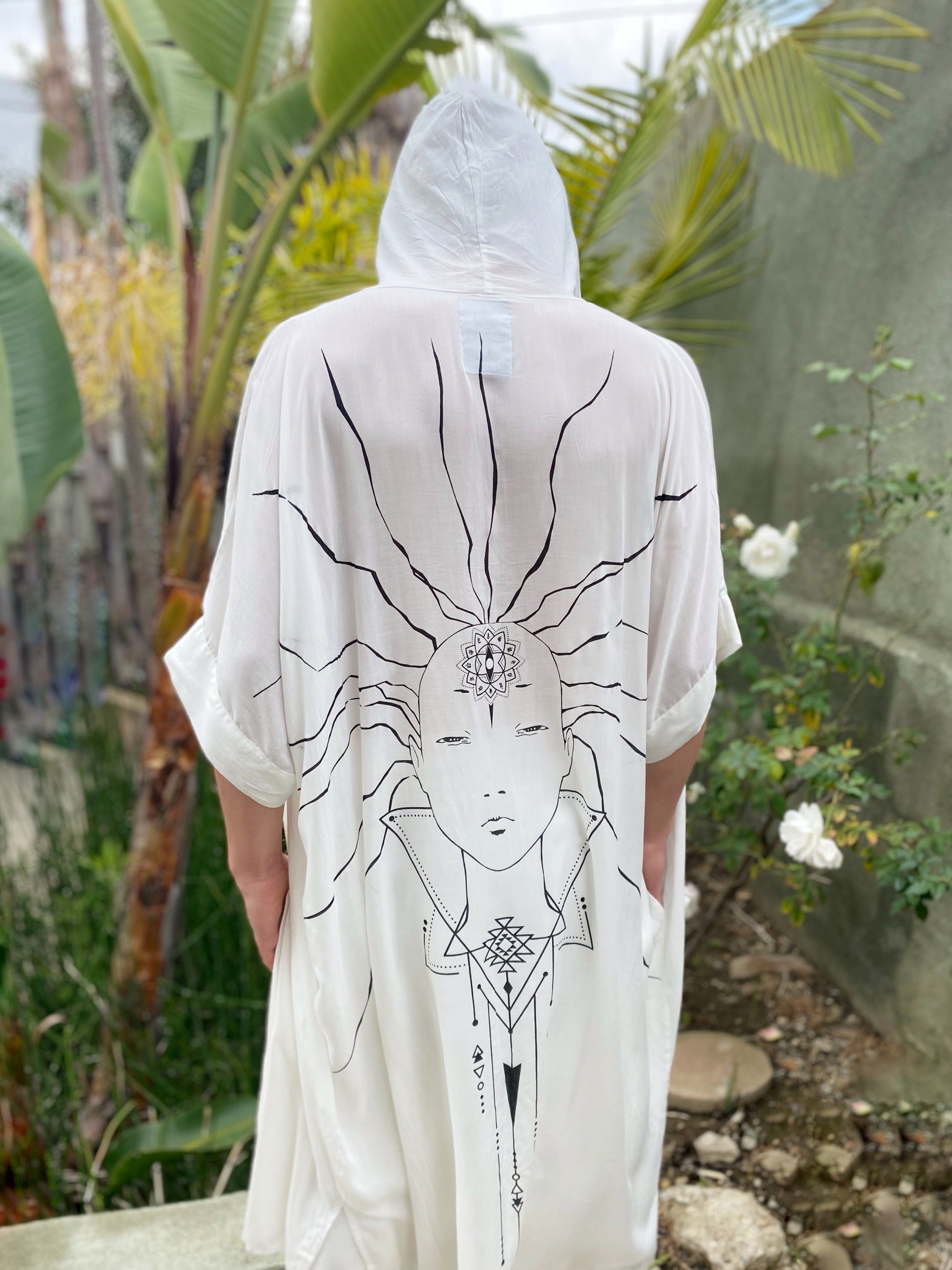 White Wearable Art Hooded Kimono designed by 3 Soul Sisters...